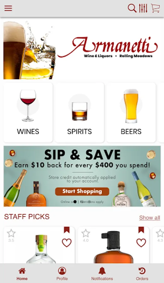 With the App you can browse for the wines & spirits available in the store, and also order a delivery or pickup.