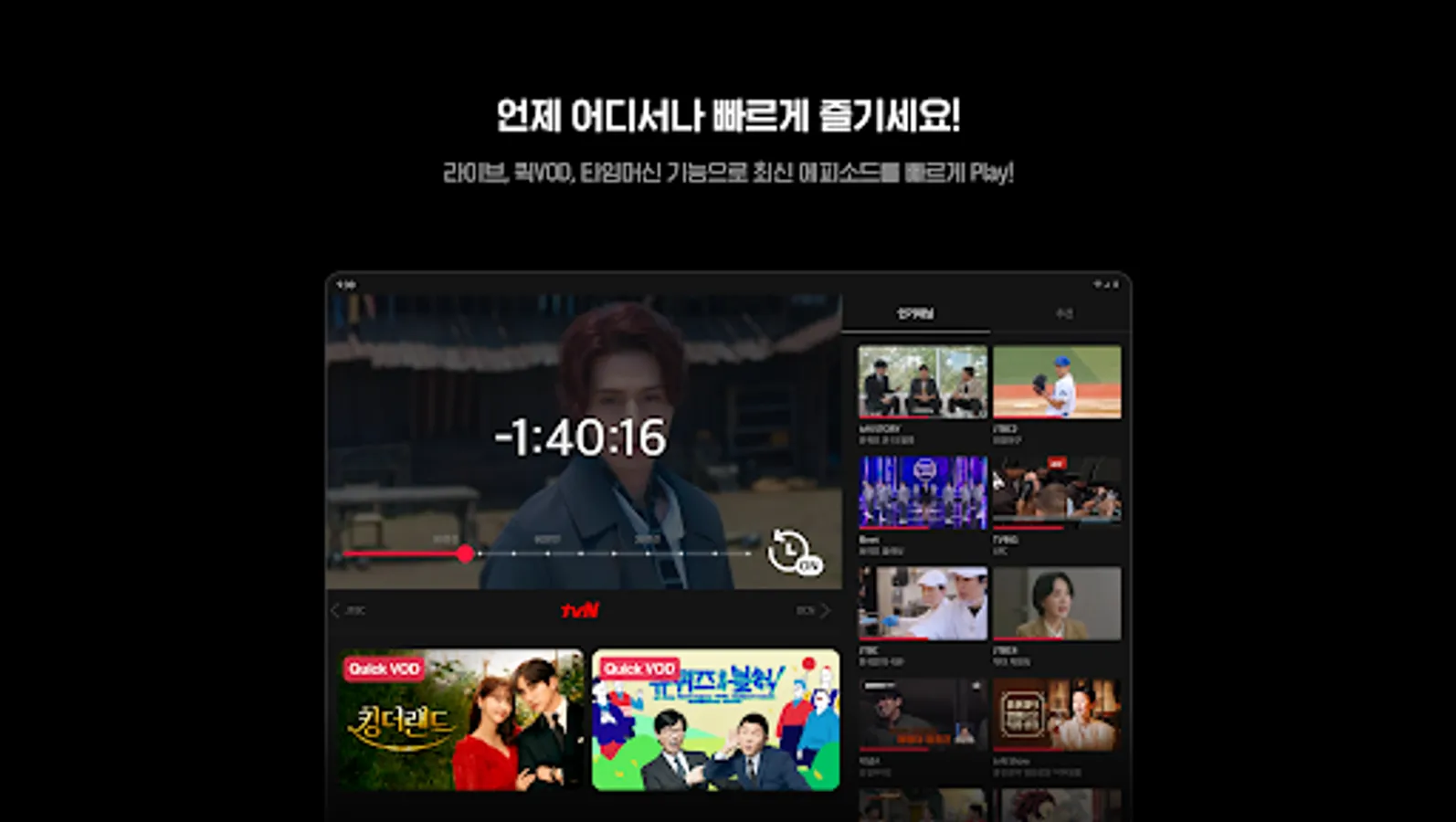 Stream unlimitedly from TVing originals to the latest tvN, JTBC, Mnet programs, movies, and overseas series.