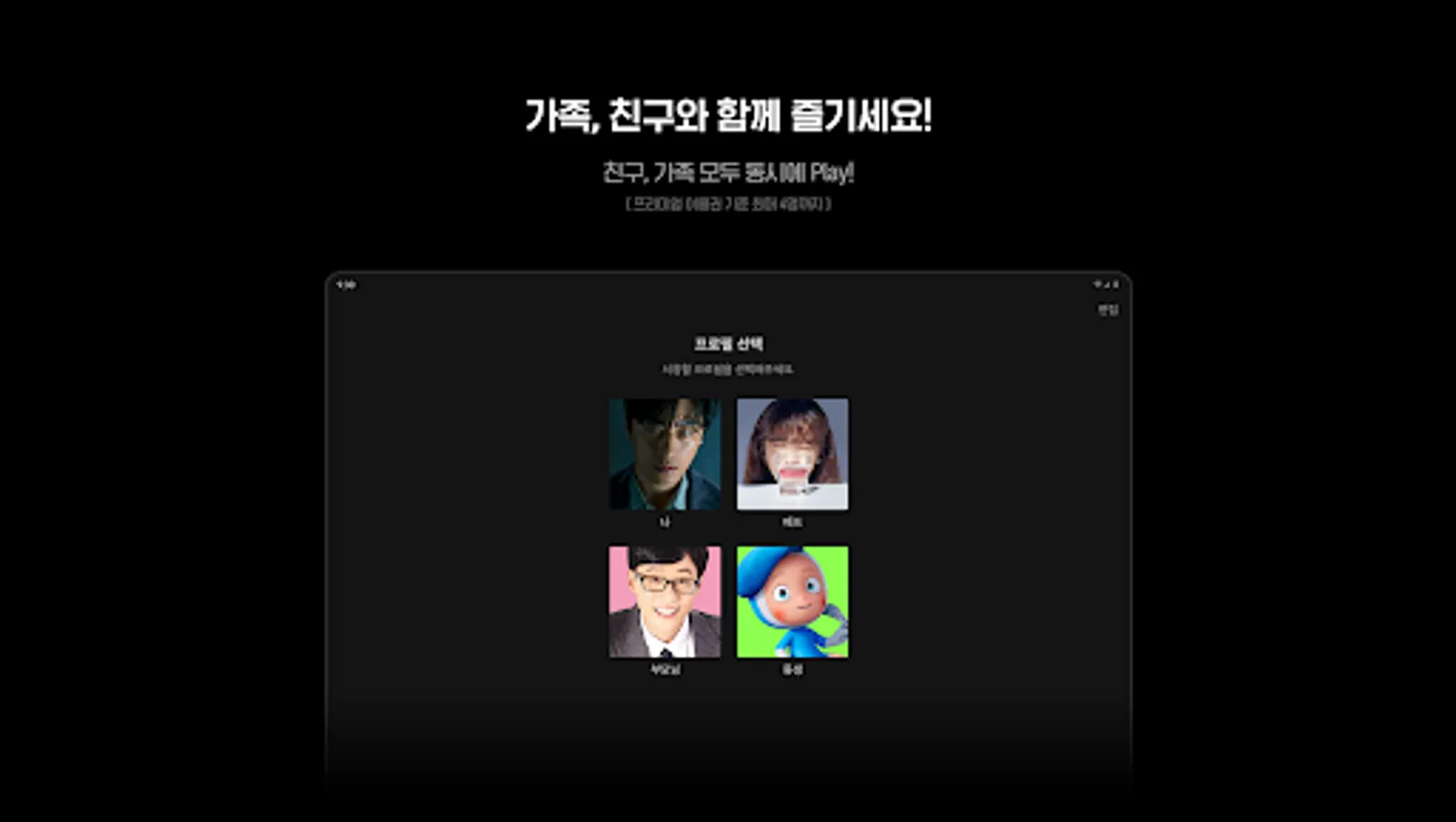 With one pass, you can create profiles for up to 4 people and watch them at the same time. (Based on premium pass)