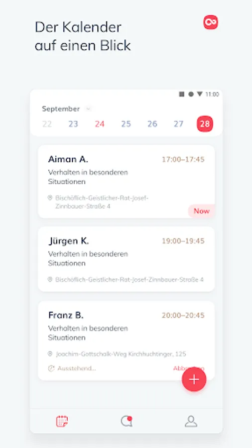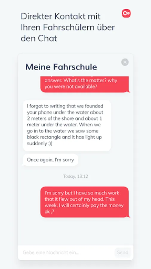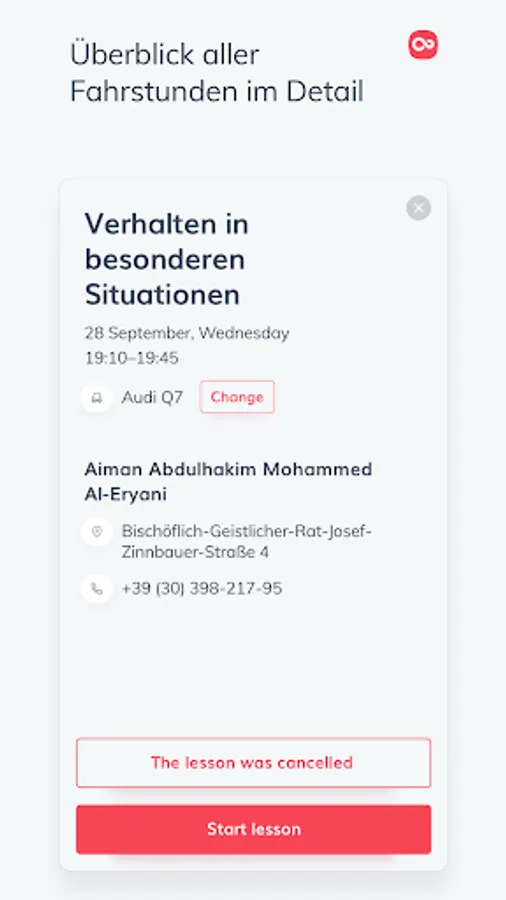 With the integrated calendar function you can book or cancel appointments quickly and easily. Your student will automatically receive a message, if you have made any changes to the appointments. Do you still have questions for the student or do you want to quickly clarify a question with the office manager in your driving school? Arrangements can easily be made via the chat function on your app. For an all-round overview, you can also call up individual student profiles and view all past and upcoming lessons and further information about the student or the lesson in detail.