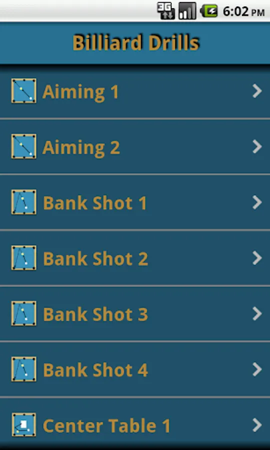 Billiard drills are broken up into 15 different categories including bank shots drill, center table drills, draw shots, etc.