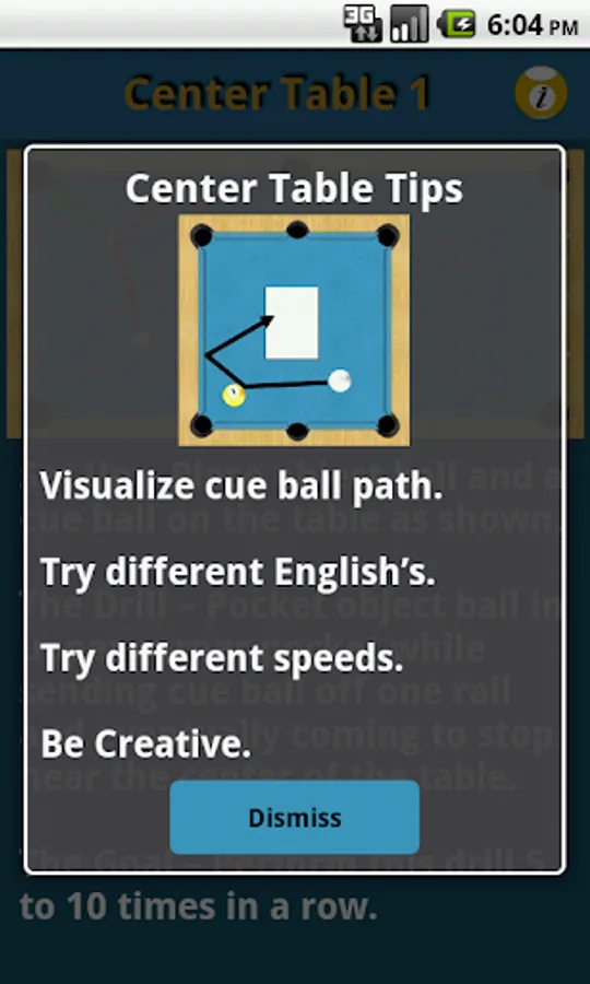Need some pointers? Press the info ball button and BAM. Some quick pointers to help your pool shot.