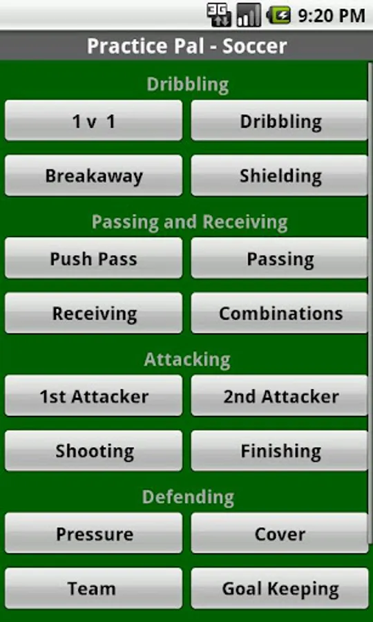 Pre-Designed Soccer Practice Plans. Designed for U-8 to U-10 teams. Perfect for the soccer coach who is on the go. 16 different practice topics with 5 games or activities per session. Each practice plan has a warm up activity, individual skills activity,reinforcement activity, small sided, and large sided games. Need coaching points ? Press a button and BAM. Pop-up coaching points for the practice session. With enough plans to cover a whole season, the new or beginner coach will also find this app useful. Tabbed views let you easily track where you are in the session. For older teams, check out Practice Pro. Designed for U10 to U14 teams.