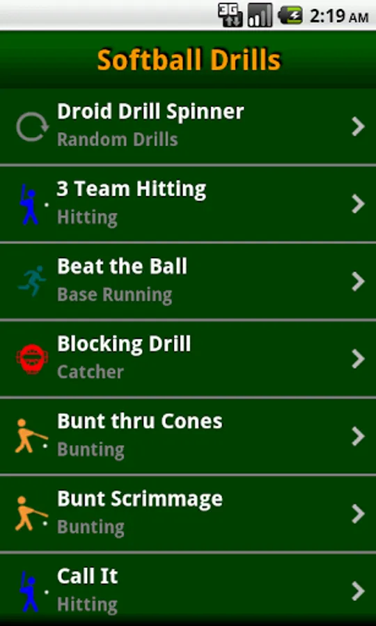 Or simply scroll down the drill list and pick an activity that matches the skill you want to work on. Hitting, base running, outfield drills etc.