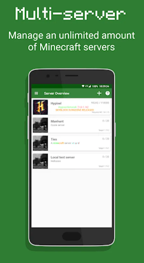 - Save and manage an unlimited amount of Minecraft servers
