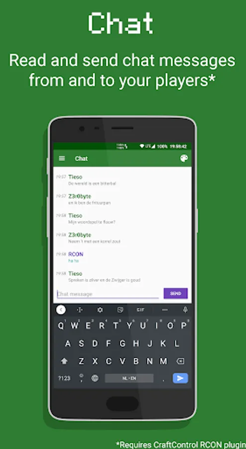 CraftControl is an unofficial RCON admin app for Minecraft Java edition servers, with a modern design and a large feature set. It allows you to easily administrate your server from your smartphone.