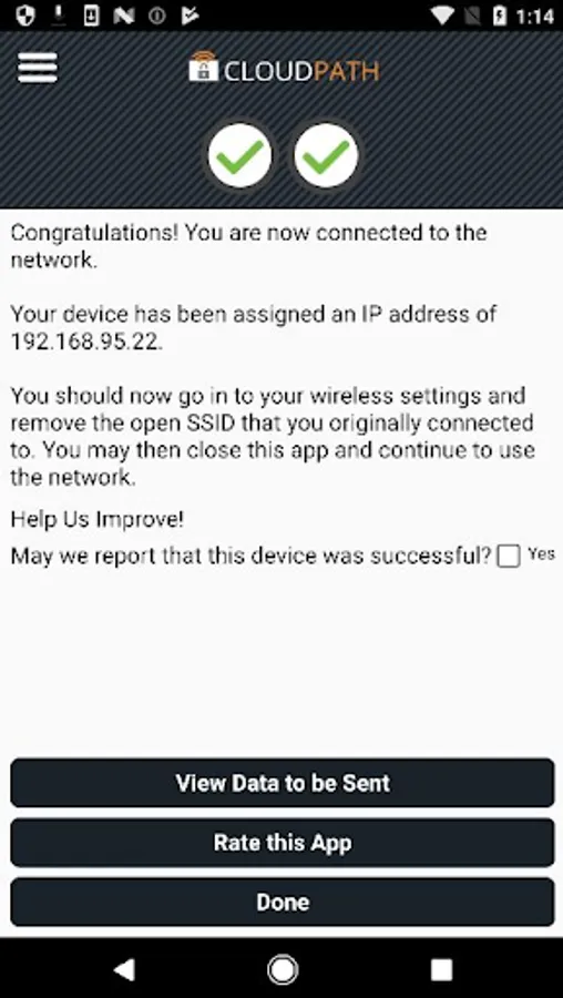 When used with the Cloudpath server software, this app allows for easy configuration of WPA2-Enterprise networks.