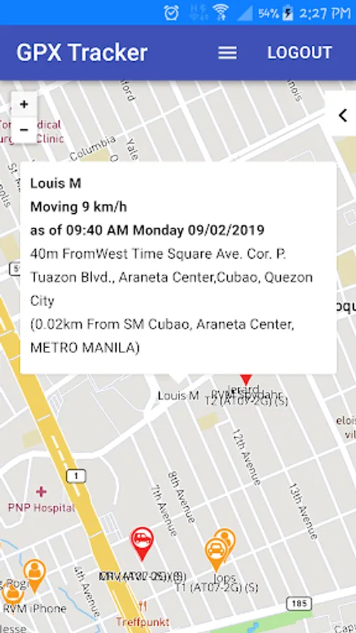 A mobile application for tracking employees and its moveable assets through GPS. The application provides the following functions: