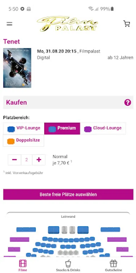 Shorten your waiting time at our concession counter and simply book your snacks and drinks from your smartphone.