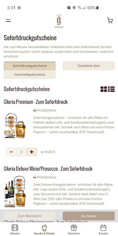 Secure your cinema experience easily on the go with the Gloria Palast app! Find out about current films or seasons and buy your tickets. You can conveniently order food and drinks via the app and have them delivered to your seat.
