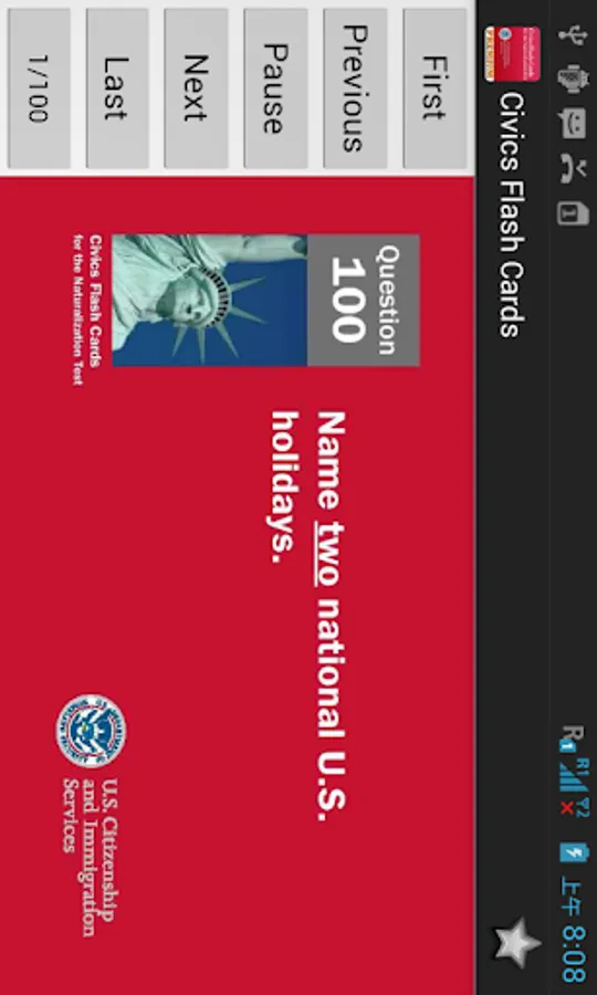 Included all 100 questions and answers audio for the Naturalization Test from USCIS.