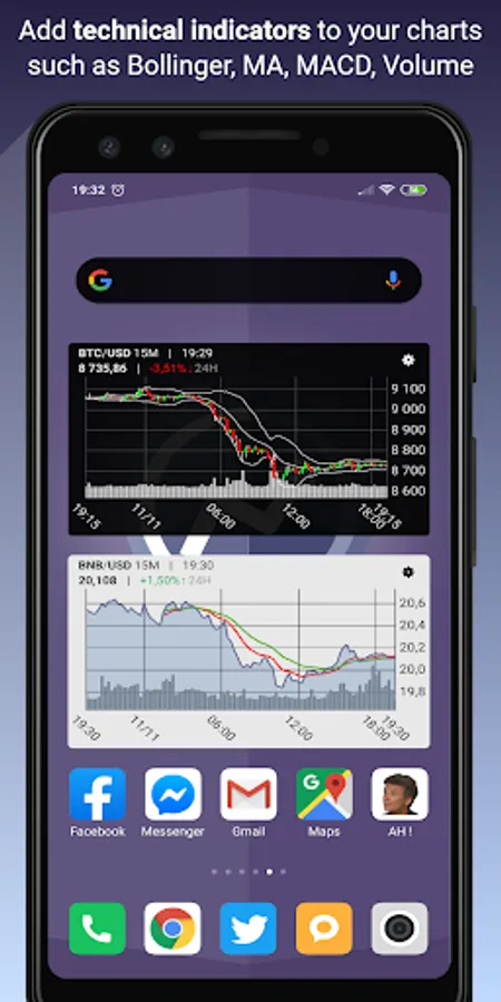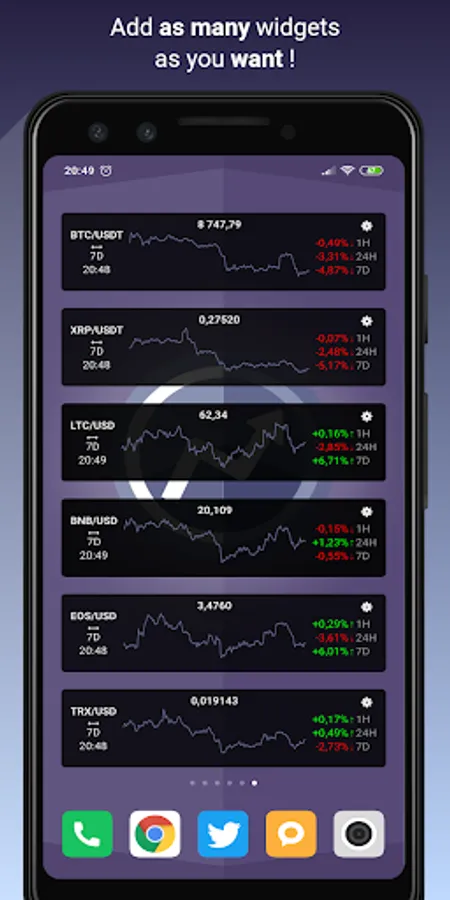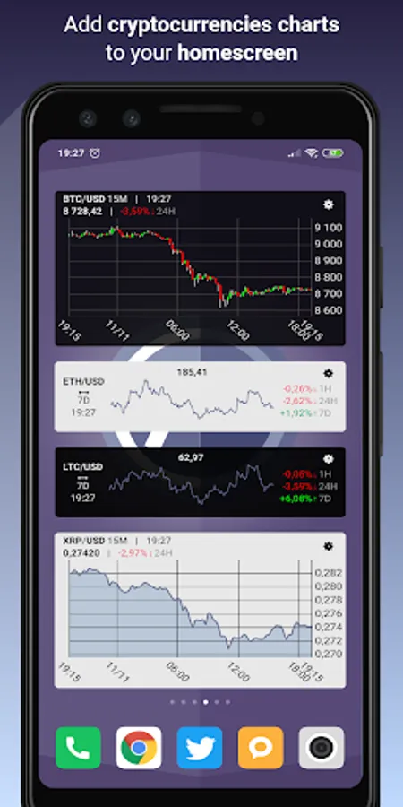 CryptoCharts Widget allows you to display prices charts of your favorites cryptocurrencies on your homescreen.