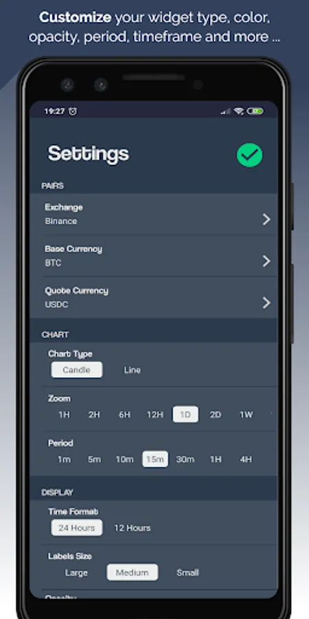 • Editable widget size and opacity