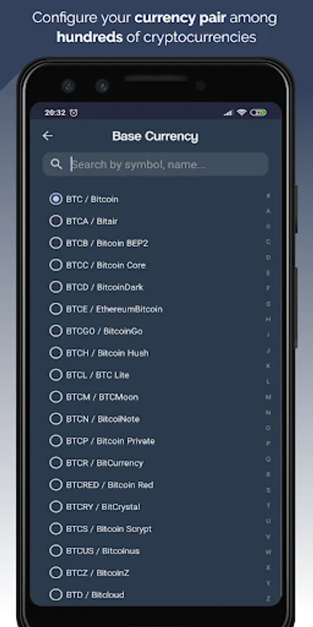 • Editable exchange pairs including Bitcoin, Ripple, Ethereum, LiteCoin, BitcoinCash, Cardano, Stellar and thousands other altcoins