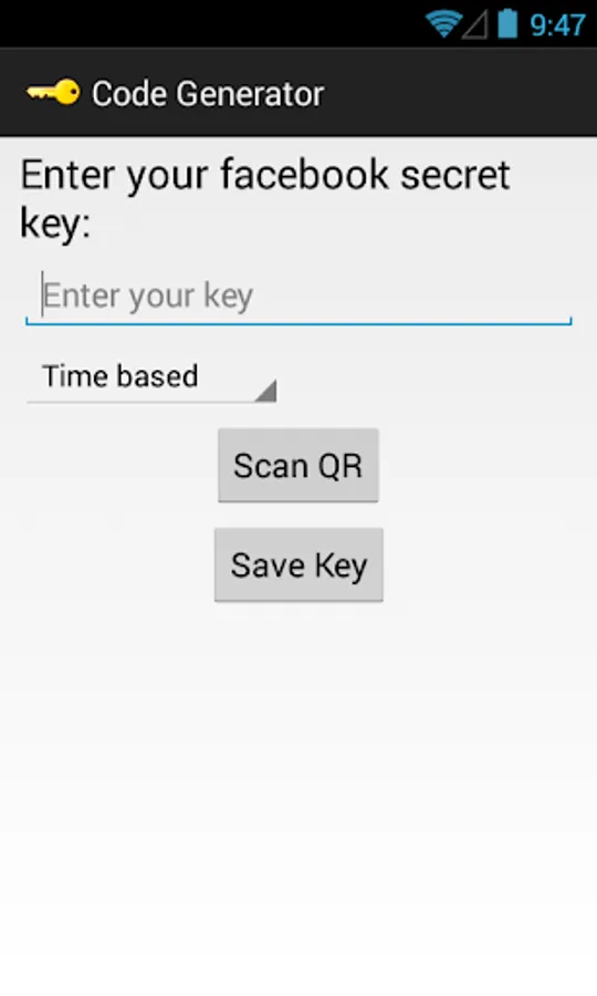 Code Generator is a time based code generation app for not just facebook. It creates a unique login code every 30 seconds, even when you aren't connected to the internet, so you always have a code when you need one. If you have login approvals turned on, you can use Code Generator instead of waiting for a text message with your login code.