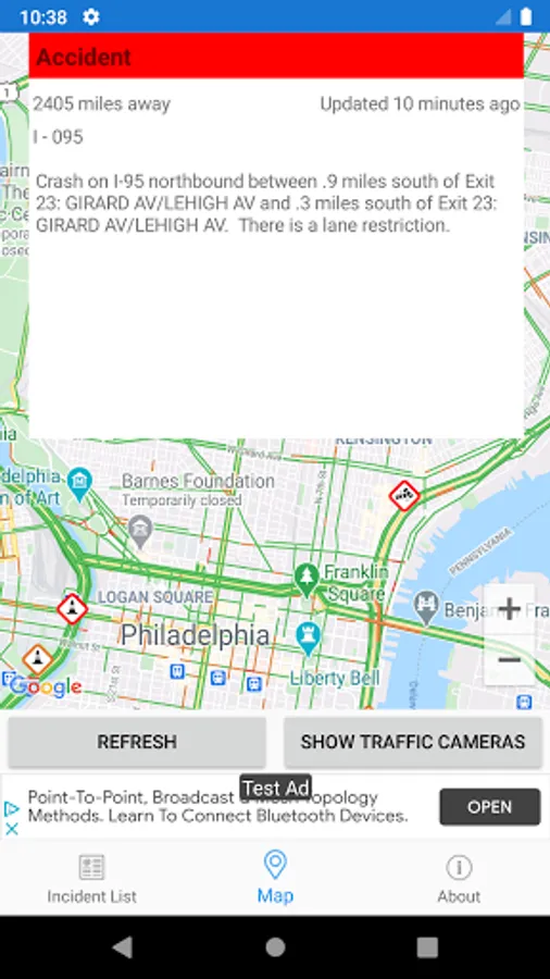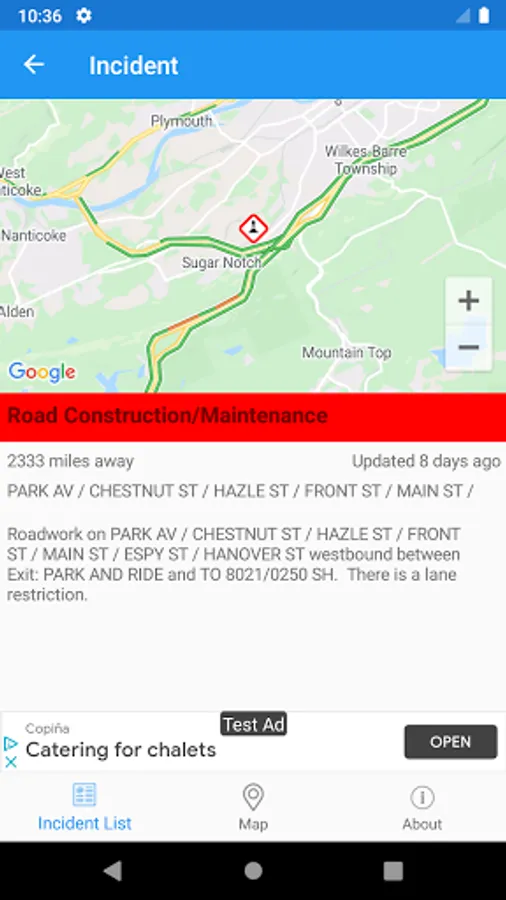 - You can quickly see the distance the incident is from you, the road name and the type of incident.