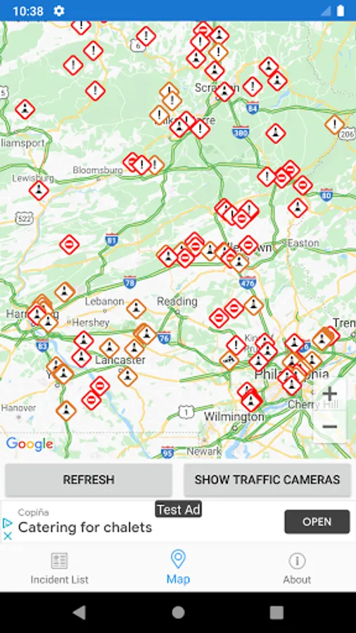 Pennsylvania Traffic Data and Pennsylvania Traffic Cameras courtesy of the Pennsylvania Department of Transportation (PennDOT) PA511 system.