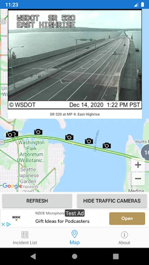 Washington Traffic Data and Washington Traffic Cameras courtesy of Washington State Department of Transportation (WSDOT) 511 system.
