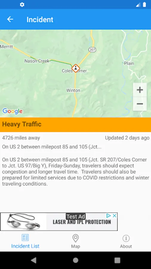- You can quickly see the distance the incident is from you, the road name and the type of incident.