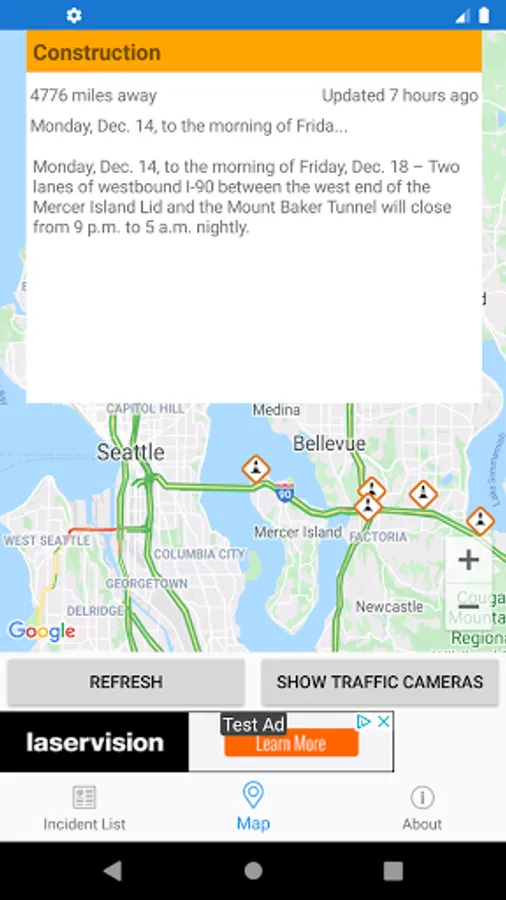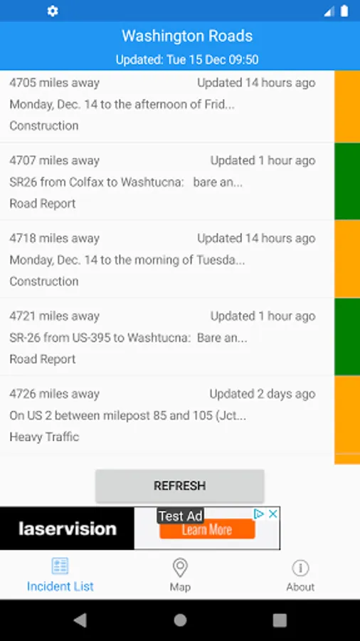 - Shows current incidents in order of distance from your current location (closest incidents are shown first).