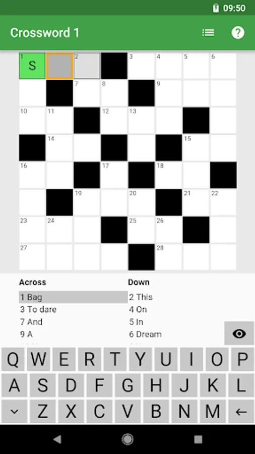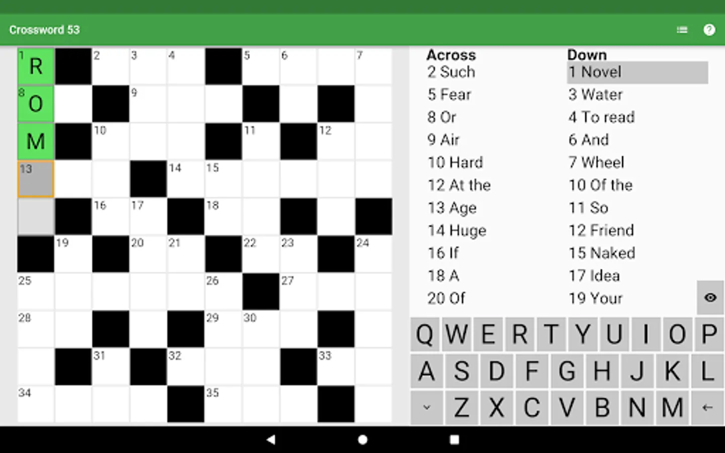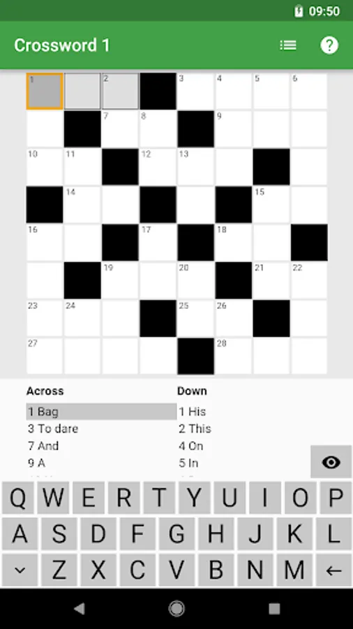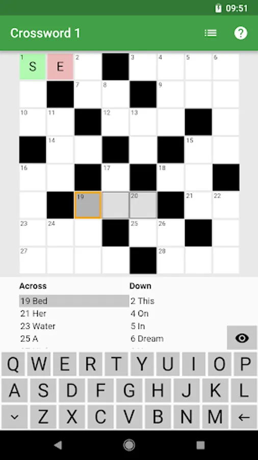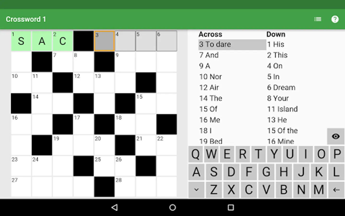 Tapping on a square will highlight the corresponding clue, tapping on a clue to view the corresponding squares in the grid.