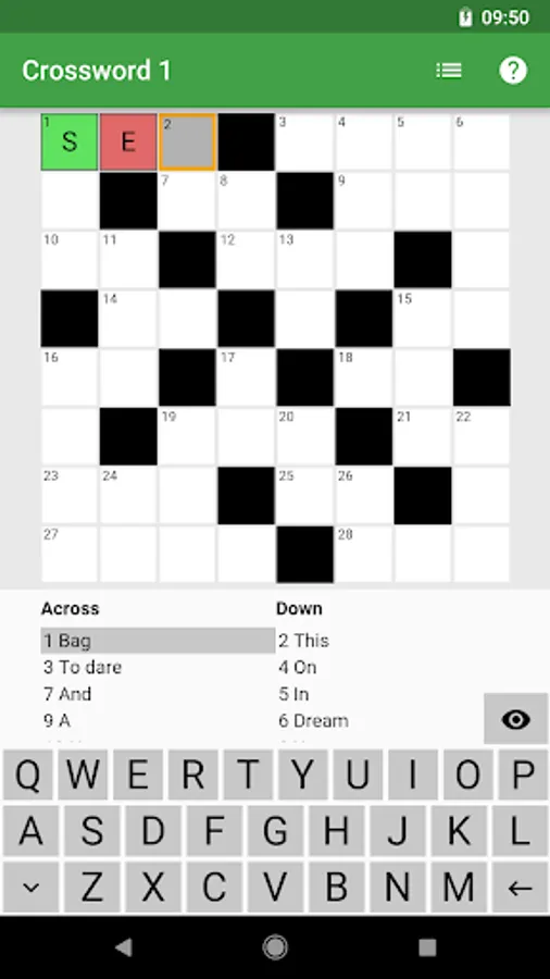 When typing a letter, you get instant feedback as to whether it is correct or not, to support your learning. And you can never be stuck, because you can reveal the currently highlighted word by tapping on the eye icon in top right of keyboard.