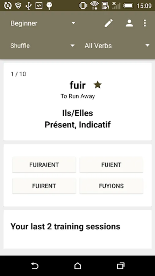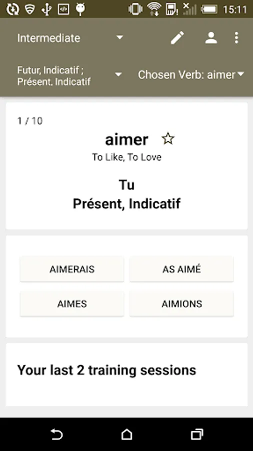 * choose your level reflecting your current knowledge of French verb conjugation: beginner, intermediate or advanced.