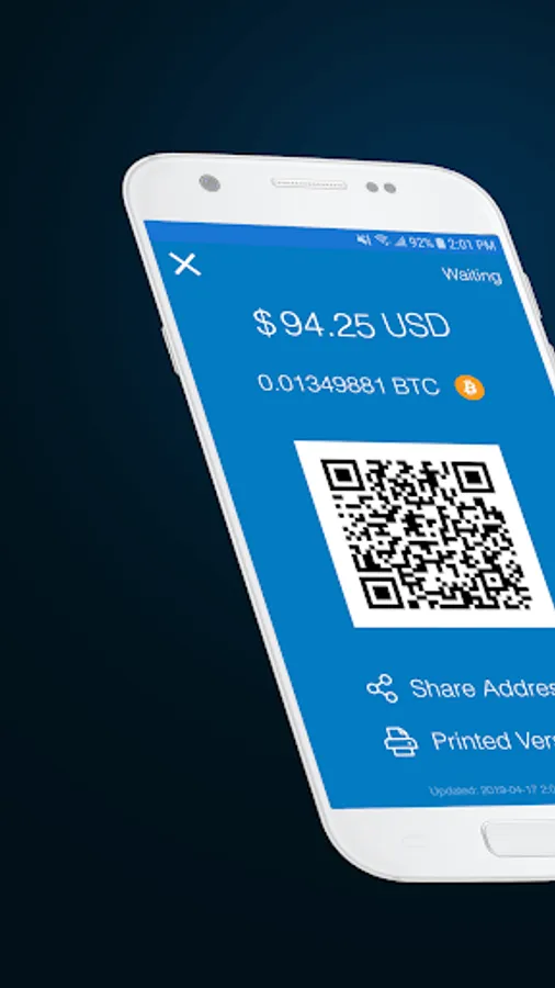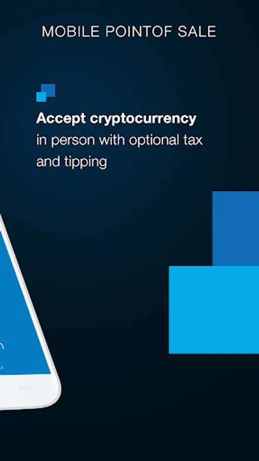 - Mobile Point of Sale (POS) – Accept cryptocurrency in person with optional tax and tipping