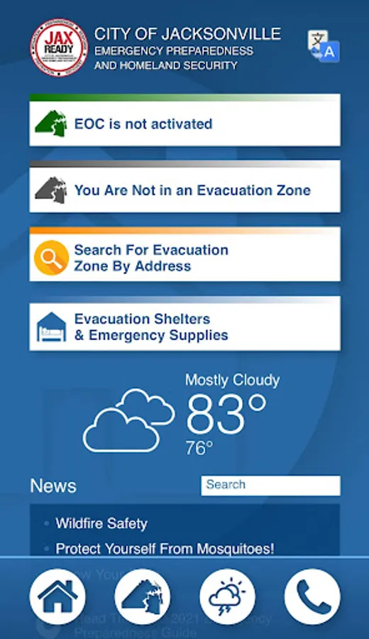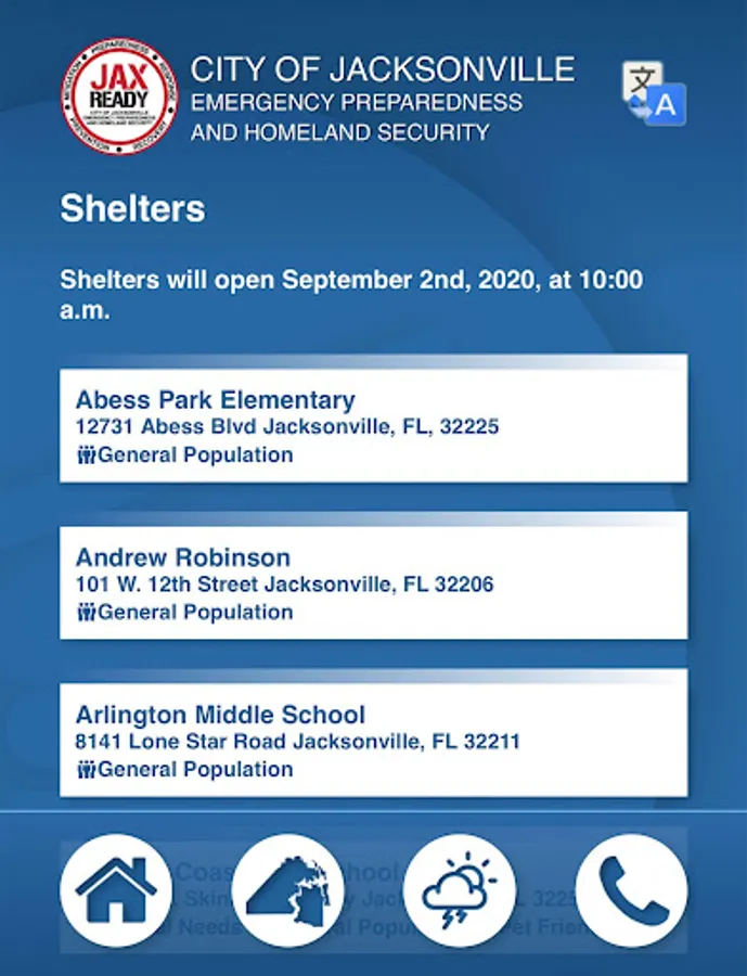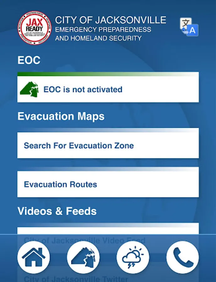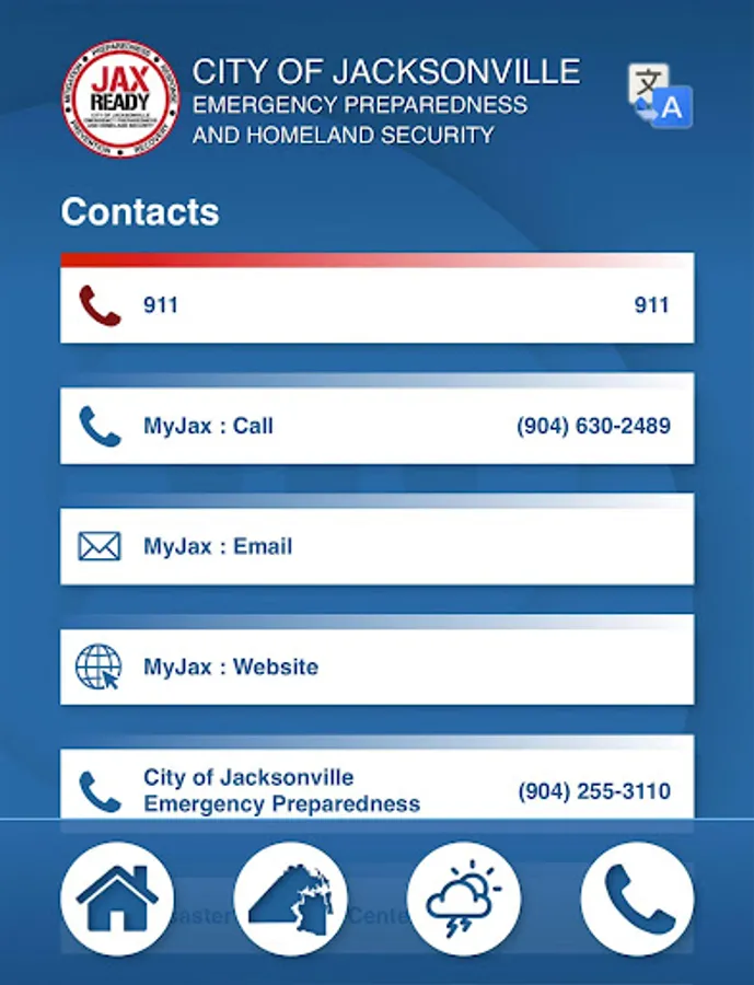 Are you ready? JaxReady— brought to you by the Emergency Preparedness Division and Information Technologies Division of the City of Jacksonville, Florida— will help you monitor weather threats and plan for evacuation in the event of a natural disaster. JaxReady provides access to current threat levels, weather reports, and wildfire updates, as well as up-to-the-minute news feeds for emergency preparedness and evacuation.