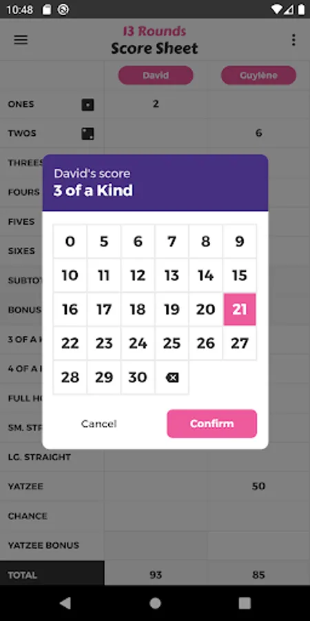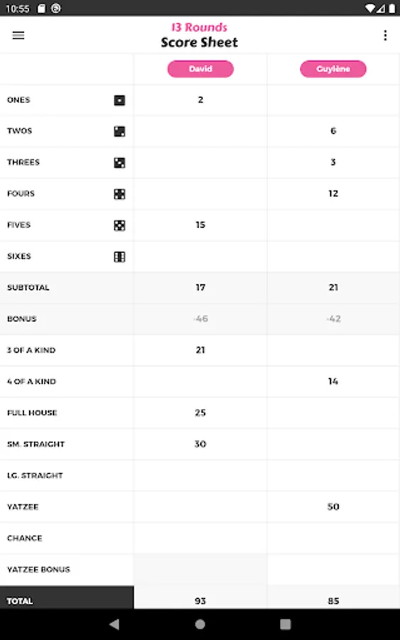 Digital score sheet for Yatzee game. No more need pen and paper. Use your own dice and start playing with your friends or family.