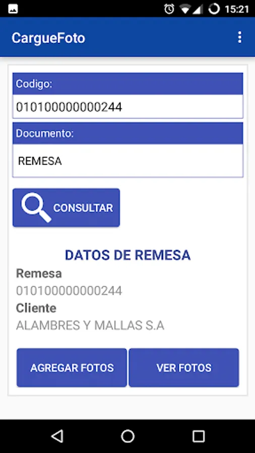 Application that allows upload photos to Silogtran system for various documents handled.