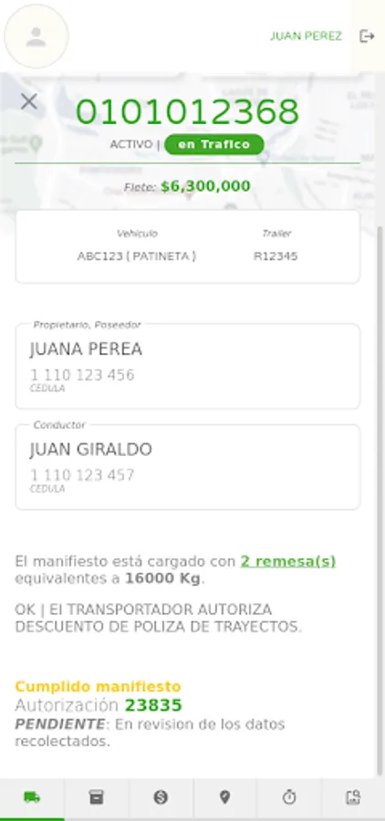 Application available for drivers that allows generating remittance compliments, news reports, manifest settlement, driver data and more.