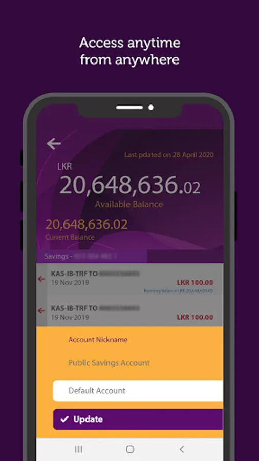 Clients would login to the new application via the existing user credentials and could enjoy almost all the functions available under e-Banking web services including Bill payments, Credit card management, Fund transfers. Inquires on Account details, Fixed deposits , Loan & Treasury bills are also included in the menu offered. ATM & Branch locator, Exchange rates & Interest rates are the new value additions to the downloadable application and branch expects that those would meet most of the user requirements.