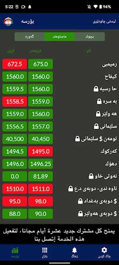 ئەم ئەپە یەکەم ئەپی کوردیه کە بە سێ زمان نرخی دراواکانت پێ ڕادەگەیەنێت، هەمیشه نرخەکان دواترین نرخن لە بازار.