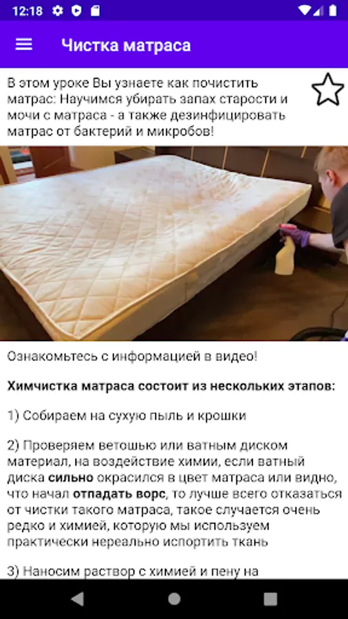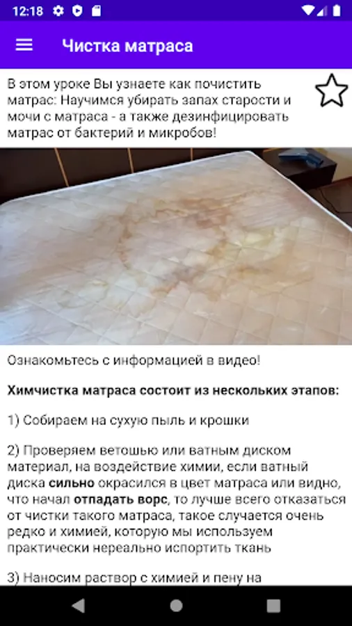 - Cleaning the mattress (Learn how to remove the smell of old age and urine from the mattress - as well as disinfect the mattress from bacteria and germs)