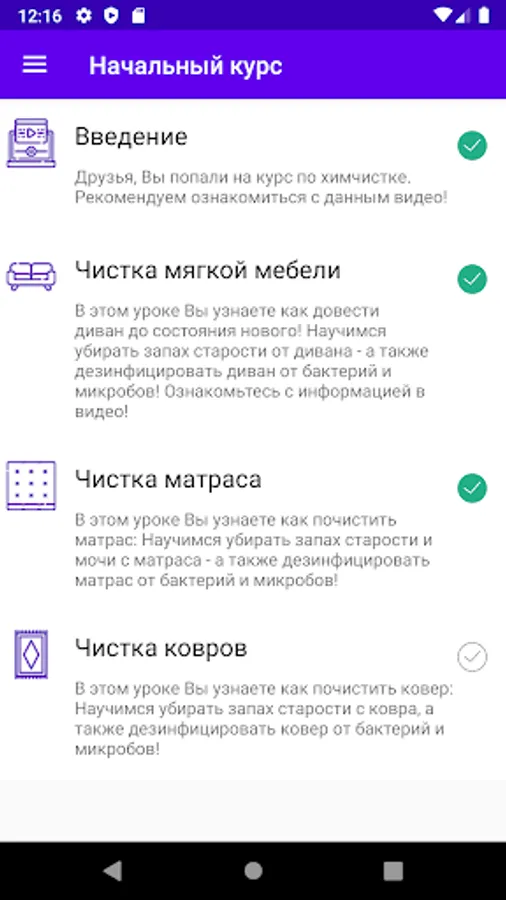 In the course, you will learn how to professionally clean upholstered furniture and carpets, learn how to restore old furniture's appearance and safety, like a new one, using completely hypoallergenic products that are safe for children.