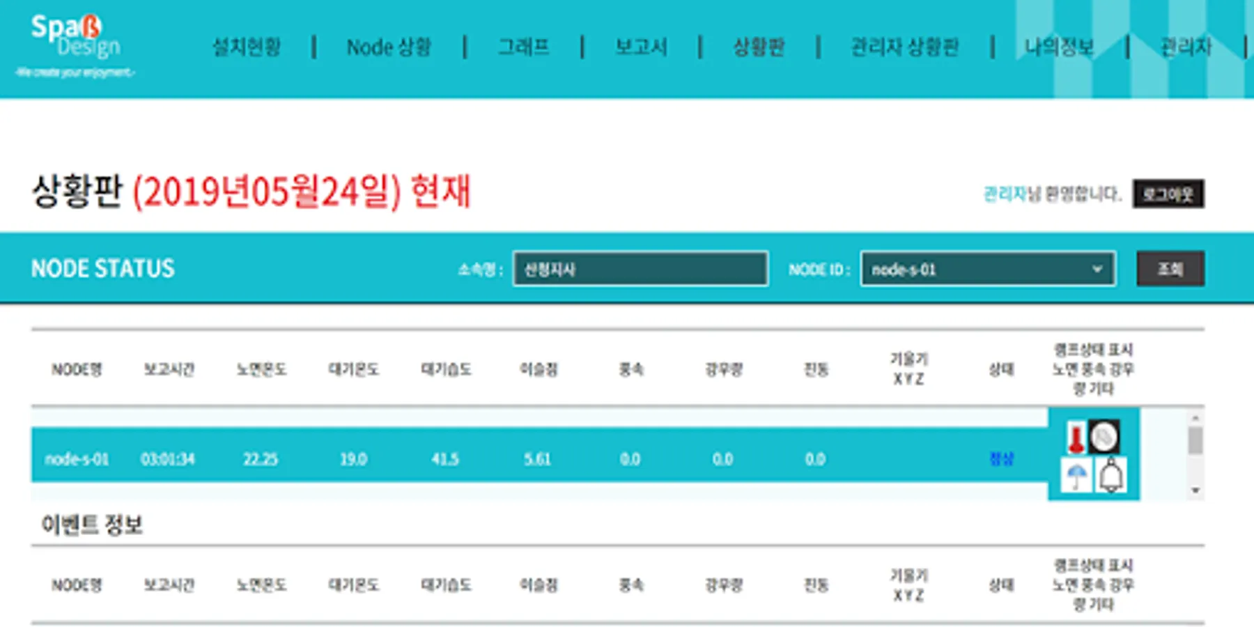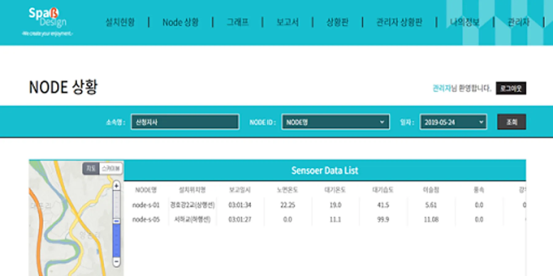 지능형 교량 안전 시스템은 교량 및 대형 구조물에 통합센서(진동 센서, 자이로 센서, 온도 센서, 습도 센서, 풍속 센서) 장치 모듈을 장착하고 장착된 센서로부터 수집된 정보를 빅데이터 분석 기술이 적용된 종합관리 시스템을 통해 결빙, 풍속, 안개, 지진 등의 기상 상황을 모니터링 하고, 교량 및 구조물 변형 등의 시설물 파손 상황을 분석하여 주행 중인 차량에 안전 정보를 제공하는 지능형 구조물 안전 관리 솔루션임 [The intelligent bridge safety system is equipped with integrated modules (vibration sensor, gyro sensor, temperature sensor, humidity sensor, wind speed sensor) in bridges and large structures, and collects information gathered from installed sensors in comprehensive management system Is an intelligent structure safety management solution that monitors weather conditions such as freezing, wind speed, fog, and earthquake, and provides safety information to the moving vehicle by analyzing the damage situation of the bridge and structures]