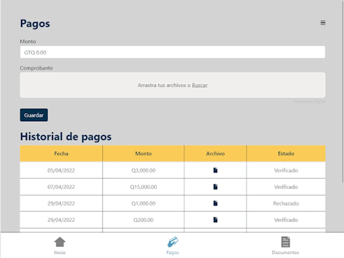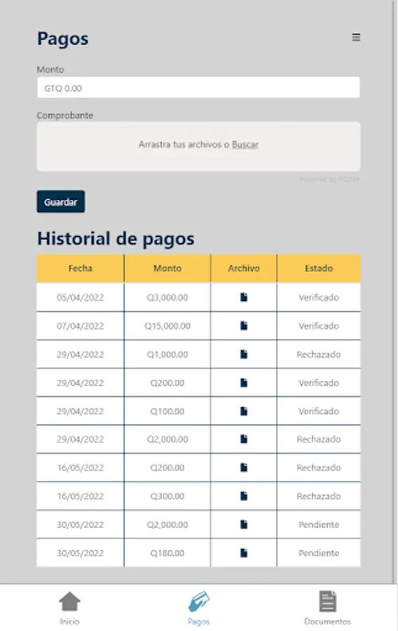The application manages the entire home buying process in different projects managed by invest.com.gt