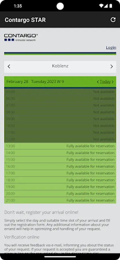 Use STAR to reserve your time window for processing at the connected Contargo terminals.