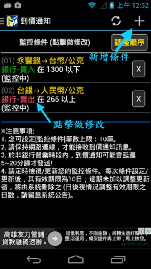 ※[到價通知]讓您設定監控價位,到價時由系統提醒通知。