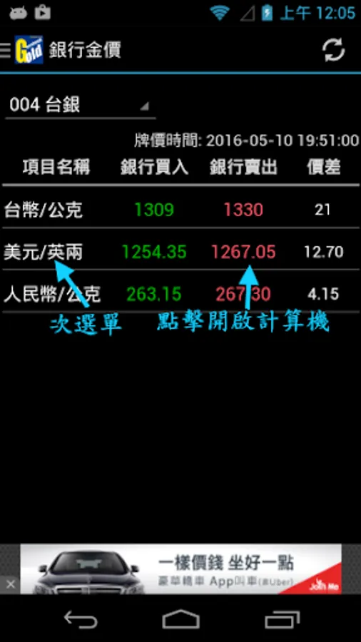 @[銀行金價]可查詢各家銀行的黃金存摺報價。