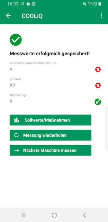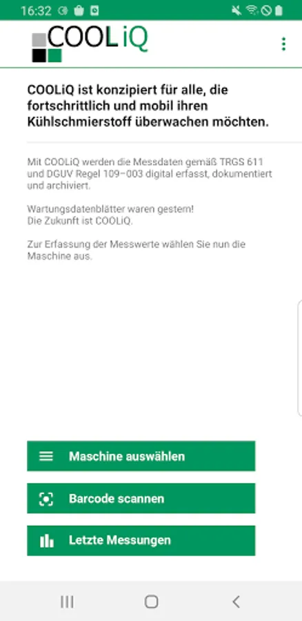 With the COOLiQ app, the measurement data is digitally recorded, documented and archived in accordance with TRGS 611 and DGUV rule 109-003.