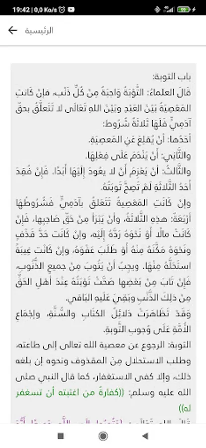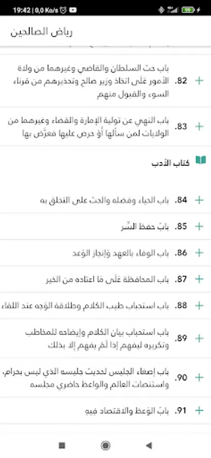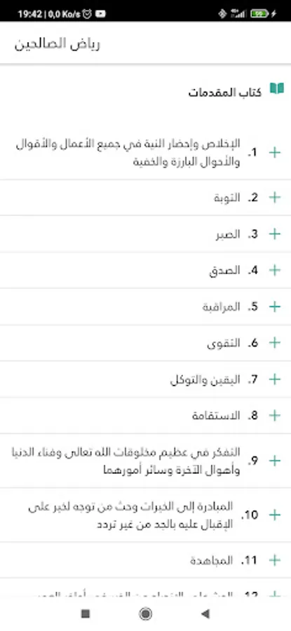 The book includes 1903 narrated hadiths, content with the text, without mentioning the chain of transmission, beginning with the companion, and with the follower rarely. Al-Nawawi said about his book: “So I thought that I should compile a summary of the authentic hadiths and adhere to it to mention only a sound hadith from the clear ones in addition to the well-known authentic books.” A number of contemporaries verified it, and they weakened some of the hadiths in Riyadh, including Sheikh Al-Albani and Al-Arna’oot, and they judged 3% of the book as weak and with This result indicates that it has reached a high degree of validity, and the hadiths are distributed in nineteen (books) except for the introductions. The book includes several chapters, the number of which varies according to their subject matter, and the chapters are numbered in sequential order from the beginning of the book to its end, totaling three hundred and seventy-two chapters. It is divided into books as follows: