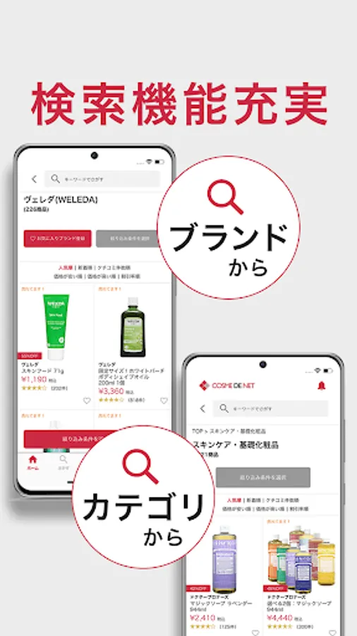 ・ A wide variety of categories such as skin care, makeup, hair care, body care, perfumes, and supplements