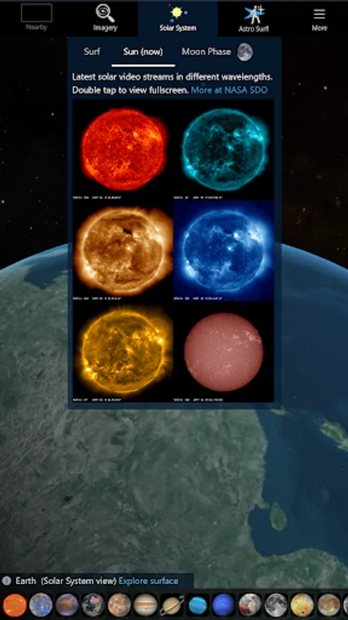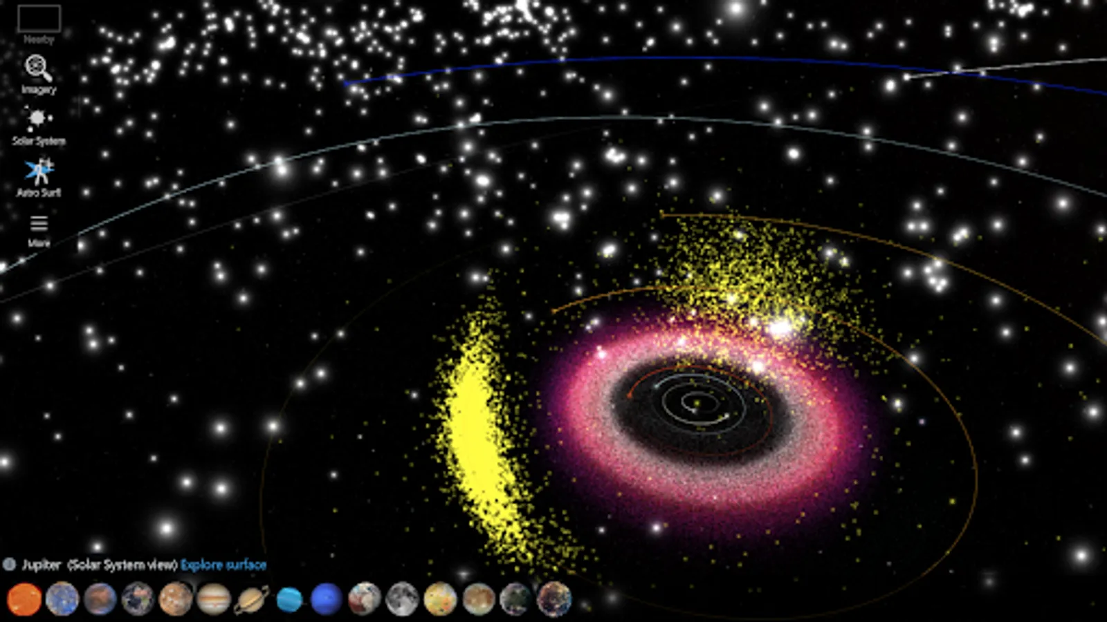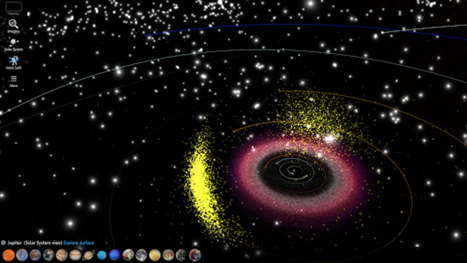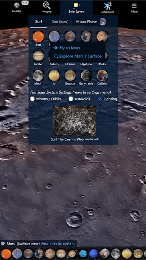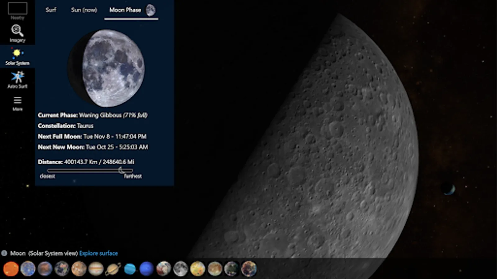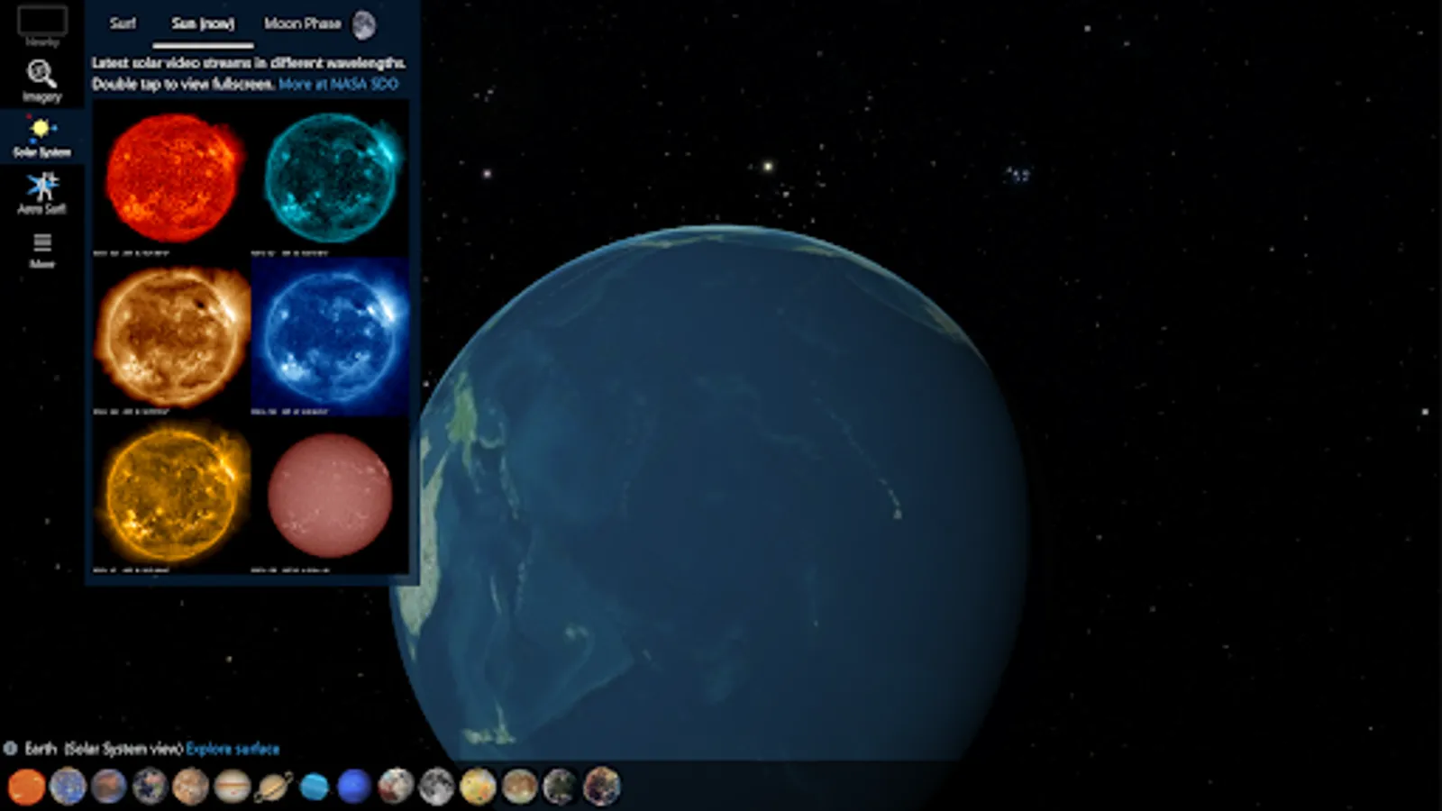 You can explore the surface of all the planets, our moon, and even see the asteroids and minor planets and their positions.