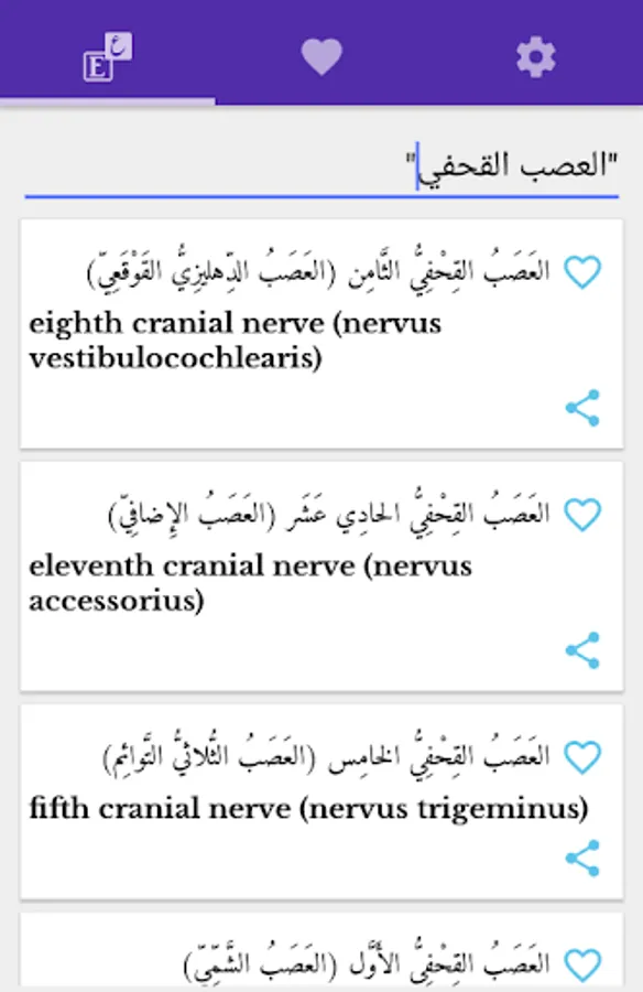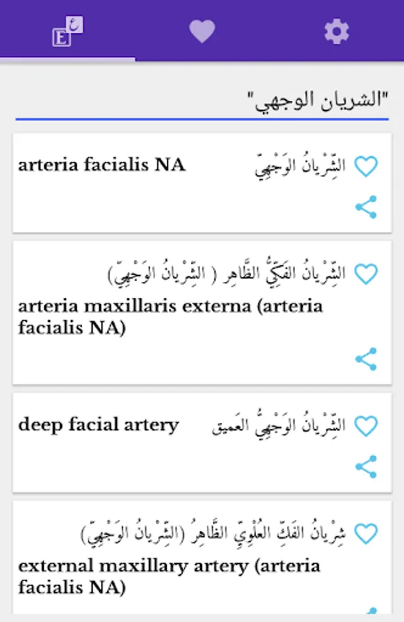 The student can search in English to translate the term into Arabic, and also can use the Arabic term and translate it to his English counterpart.