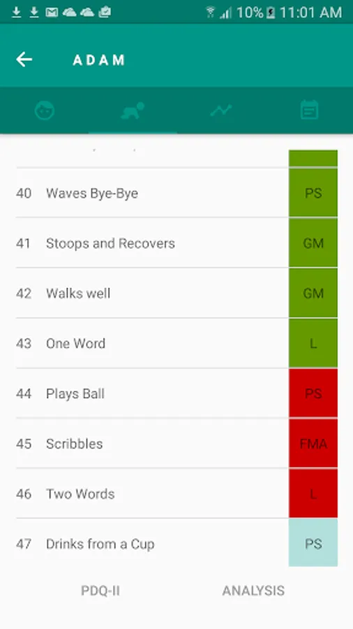 Denever II (1998) prescreening developmental questionnaire (PDQ-II) analytic tool will make it easy to monitor the growth progress to get ahead of any potential problem in the child's growth milestones.