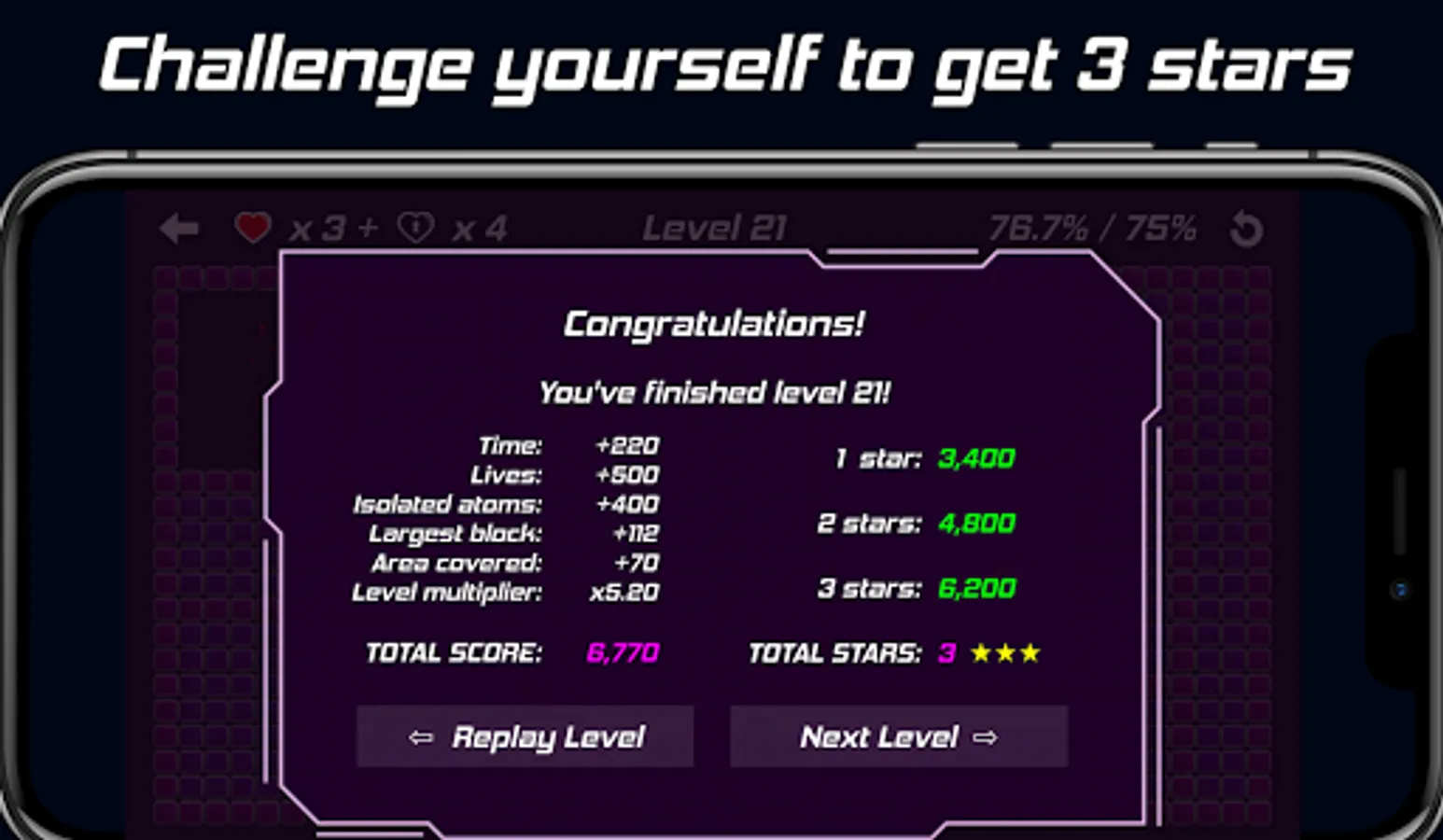 Depending on the total score, you can get up to 3 stars for each level. If you didn't manage to get 3 from the first try, you can always try again. :)