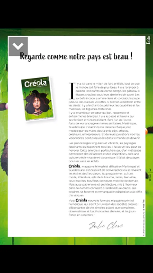 Find the Créola magazine in digital version, with its application for smartphone and Android tablet.