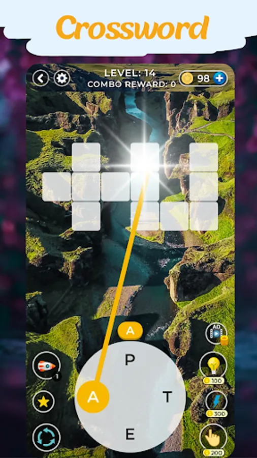 In each level, you'll be presented with a crossword puzzle grid.